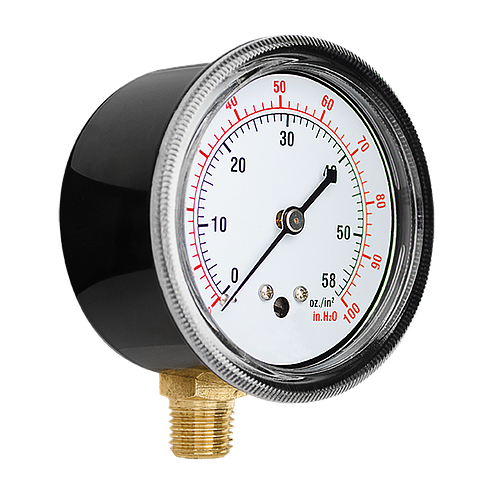 ADCCOM Indicador de presión tipo diafragma, caja fabricada en lámina de acero esmaltado negro, conexión NPT, ventana de policarbonato.